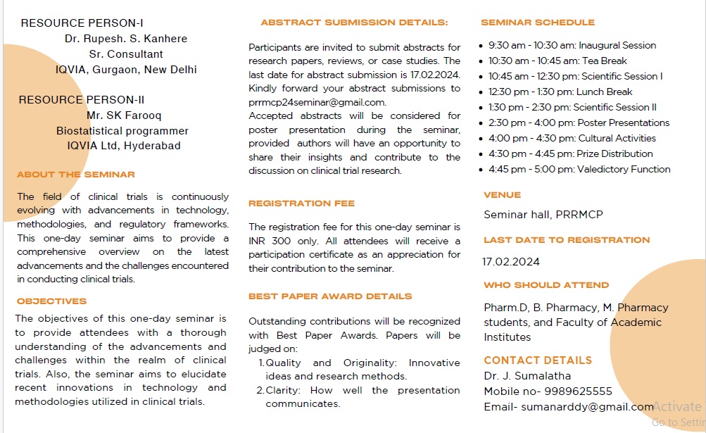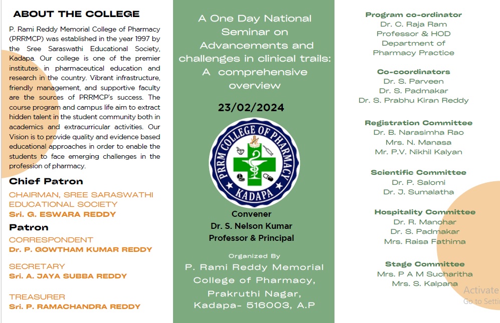 A One Day National Seminar on Advancements and challenges in Clinical Trails: A Comprehensive overview - 23.02.2024